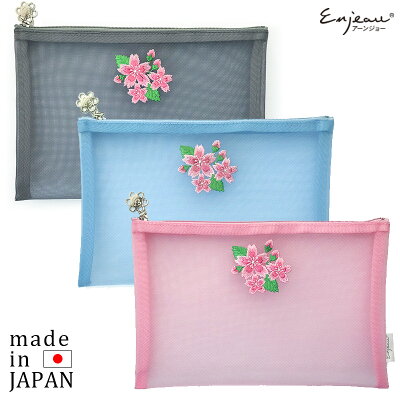 [ネコポス便100円] メッシュポーチ 小物入れ 刺繍入り【桜メッシュポーチ】(ピンク、ブルー、グレー)化粧ポーチ コスメポーチ マスクケース アーンジョー 日本製